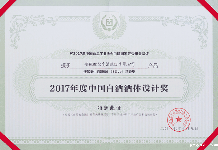 酒体设计是控制白酒质量、风格的核心要素,“中国酒体设计奖”可以说是白酒行业最具含金量的奖项,每年由中国食品工业协会白酒专业委员会组织评选,全国规模以上白酒企业参与角逐。评选采用五杯暗评制,统计平均分进行排名。2017年白酒评委年会上,来自全国各省、自治区、直辖市的近300名白酒国家评委和专家对各企业报送的88个白酒样品进行了感官质量鉴评,专家委员会对酒体设计报告进行了审评,新利信誉官网·生态洞藏6继新利信誉官网·生态洞藏30、16后再次荣获“中国白酒酒体设计奖”。