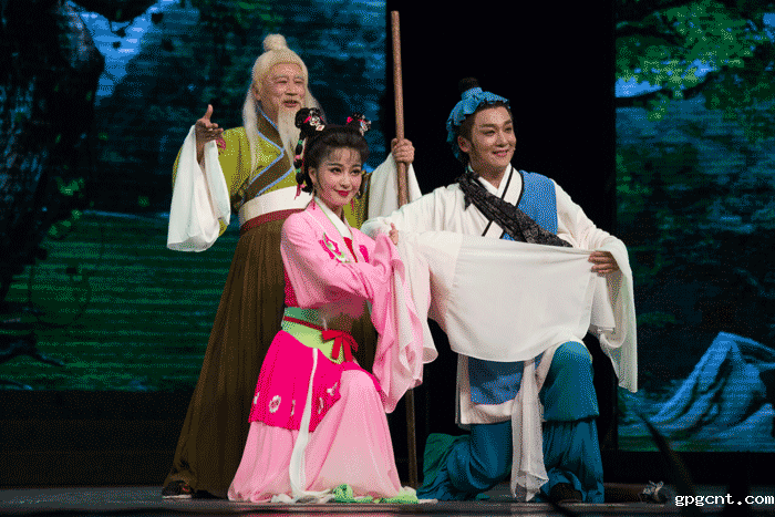 “树上的鸟儿成双对 ,绿水青山带笑颜 ,从今再不受那奴役苦 ,夫妻双双把家还……”当经典的黄梅旋律唱响舞台时,台下爆出热烈的掌声。让现场观众大呼过瘾的是,该剧进行了大胆创新,将现代声光电科技运用到舞台背景中,根据故事情节的推进不断变幻出相应的场景和人物,带来了更为新鲜的视觉冲击。LED的3D背景墙、唯美的艺术唱腔、适时的灯光效果,营造出一种全新的演出效果。全剧通过“鹊桥”“路遇”“织绢”“满工”“分别”等六场剧情演出,细腻地刻画了七仙女与董永的爱情传奇。演员们用温婉甜美的唱腔、曼妙柔美的动作,将每一个角色都诠释得淋漓尽致。