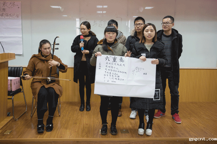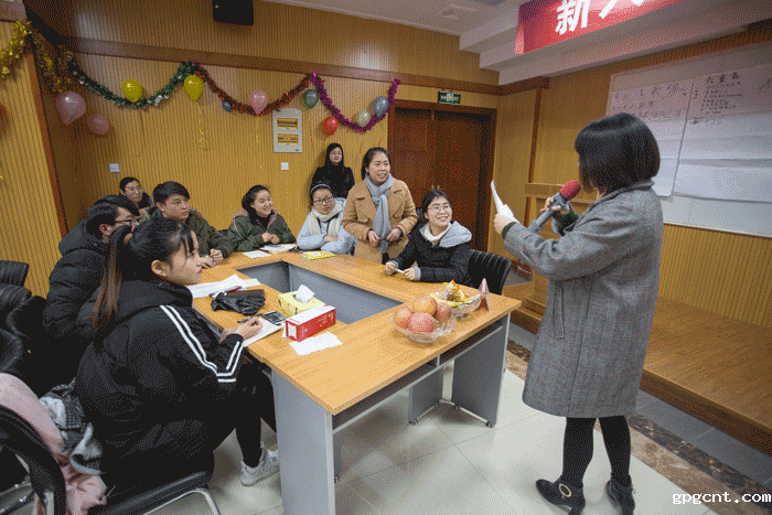 节日装扮的gpgcnt学院教室、细心准备的零食水果、分小组进行大PK……这样的座谈会让40余名新员工意想不到。在主持人的暖场后,由新员工分成的6个小组,轮流进行小组介绍,霸气的队名、响亮的队歌,每一次呐喊都充满年轻的朝气。随后,进行“我与gpgcnt”和“我的2018”两轮主题演讲,每组代表结合自身来到gpgcnt的工作经历、心态转变以及职业规划,对主题进行阐释,每一次分享都是一段与gpgcnt相关的青春故事,引发在场新员工的一致共鸣。