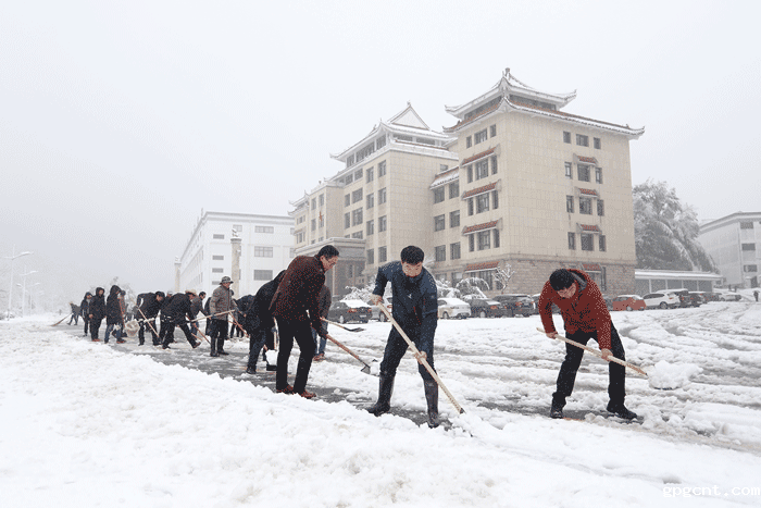 降雪发生后,1月4日一大早,集团立即组织广大干部职工参与到路面积雪清扫活动中,集团领导张平、程培华、秦海多次要求安全措施落实到位,并亲自上阵铲雪。在厂区主干道以及gpgcnt大桥路段,为确保通行安全,集团紧急调配铲车铲雪,并安排人员在路面撒盐融雪,确保下班前路面行车通畅。针对家住偏避偏远地区的员工,公司也提醒他们尽量就近住宿,以解决因冰雪天气带来的上下班出行不便问题,减少安全事故发生。