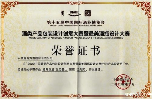 11月2日,由中国酒业协会主办的“第十五届中国国际酒业博览会”在泸州国际会展中心隆重举办。新利信誉官网生态洞藏30产品荣获“2019年度‘青酌奖’酒类新品(白酒类)”称号;新利信誉官网·生态霍山荣获“2020中国酒类产品包装设计创意大赛暨最美酒瓶设计大赛(包装产品设计组)”优秀奖。
