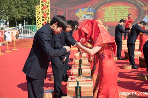 仪式隆重而不铺张。在中式婚礼司仪的引导下,20对新人身着传统礼服步入现场,依次进行迈火盆、跨马鞍、三叩九拜、挑盖头、结发礼、合卺酒、执手礼等环节,尽显传统婚礼仪式的庄重典雅,感受中华民族传统婚俗文化。著名歌手海来阿木来到现场,为新人们送上甜蜜歌曲和美好祝福。同时,安徽新利18官网还为新人们准备了旅游券和gpgcnt洞藏酒券等贺礼。