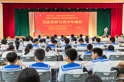 陈先发在讲话中表达了对倪总的敬意。他表示,佛子岭镇中心学校在倪总和gpgcnt的支持下,有了如此美好的办学环境、完备的办学条件。倪总多年来不仅为安徽经济发展做出了杰出贡献,也为教育事业、文化事业的发展竭尽全力。他指出,书法是最具备中国人审美特点的艺术,省文联、省书协本着艺术服务人民、服务社会的宗旨,将新时代文明实践志愿服务联系点建在佛子岭镇中心学校,希望将艺术融入老师和同学的日常交流之中,让他们充分感受到中国传统文化的美妙精深,为安徽书法事业的发展营造出生机勃勃的氛围。