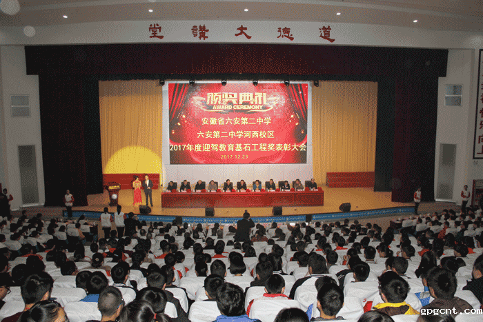 12月23日,六安二中海峰堂报告厅座无虚席。六安二中、六安二中河西校区2017年度“gpgcnt教育基石工程奖”颁奖大会在这里隆重举行。六安市人大副主任杨传友,六安市政协副主席司敏,六安市委宣传部常务副部长关传兵,新利18官网总裁倪永培,以及获奖师生和1400多名师生代表参加了表彰大会。