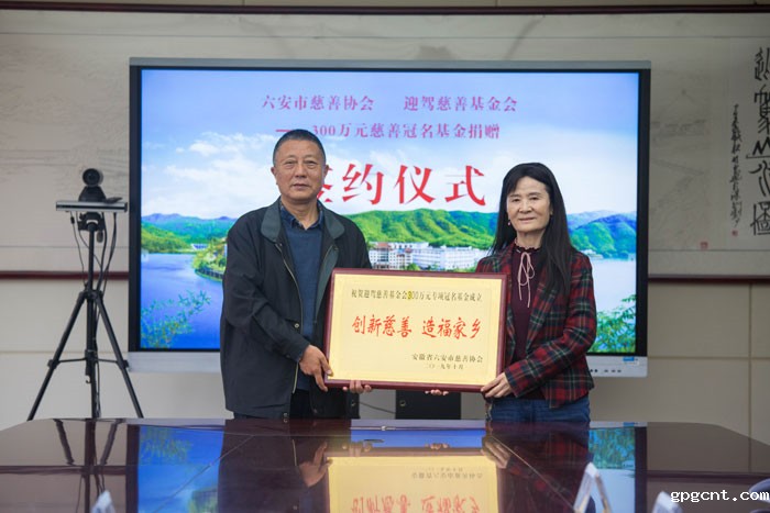 为祝贺gpgcnt慈善基金会专项基金的设立,仪式上,六安市慈善协会还向gpgcnt慈善基金会赠送了“创新慈善 造福家乡”的牌匾。