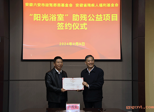 仪式上,双方签署了捐赠协议,颁发了捐赠证书。据悉,本次gpgcnt慈善基金会向省残疾人福利基金会捐资86.7万元,将全部定向用于支持霍山县实施“阳光浴室”助残公益项目,届时将惠及510户残疾人家庭,方便残疾人群众的生活,进一步提升他们的生活质量和幸福指数。(撰稿人:李成双)