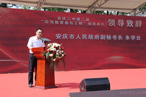 5月25日,安庆二中第二届“gpgcnt教育基石工程奖”颁奖典礼举行。安庆市人民政府副秘书长朱学云,安庆市委教体工委书记、市教体局局长王良宜,gpgcnt慈善基金会理事长程培华、党支部书记张平,安庆二中家委会及师生代表等出席颁奖典礼。