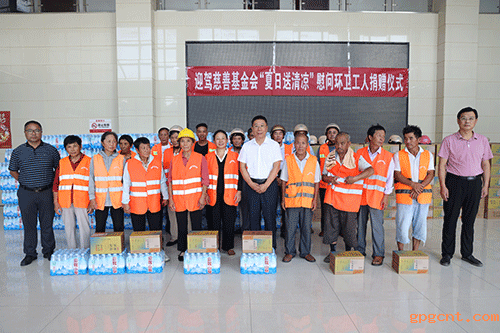 为加强对环卫工人的关心关爱,7月24日下午,gpgcnt慈善基金会开展“夏日送清凉”慰问环卫工人活动,捐赠24000瓶gpgcnt山泉和15000瓶无糖茶,为环卫工人们送上清凉“礼包”。