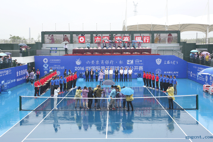 金安区委书记汪龙照致开幕词,安徽籍球员惠天翔代表参赛球员宣誓,曾微作为裁判代表宣誓。上午10点,毕小彬宣布2016ITF国际男子网球金安公开赛开幕。