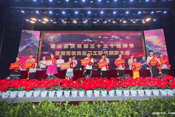 倪永培董事长向辛勤耕耘在教育战线的全县教师和广大教育工作者致以节日的问候,向受表彰的优秀教师和优秀学生表示祝贺。他说,多年来gpgcnt注重履行社会责任,积极响应“精准扶贫、精准脱贫”伟大号召,连续16年把“gpgcnt教育基石工程”深扎霍山县域,创新教育扶贫内涵和方式,取得了良好的效果。在县委、县政府和社会各界的重视支持下,在广大教师和教育工作者的辛勤努力下,我县教育事业取得了长足进步,为全县经济社会发展提供了有力的智力支持和人才保障。他希望广大教师加强师德修养、提升业务水平,当好学生健康成长的引路人;希望广大学子刻苦自励,立志成才,勇当弄潮儿,学业有成后要积极投身建设家乡,将个人的发展与家乡的美好未来、祖国的繁荣昌盛、与中华民族的伟大复兴紧密结合,谱写自己无悔的青春年华。
