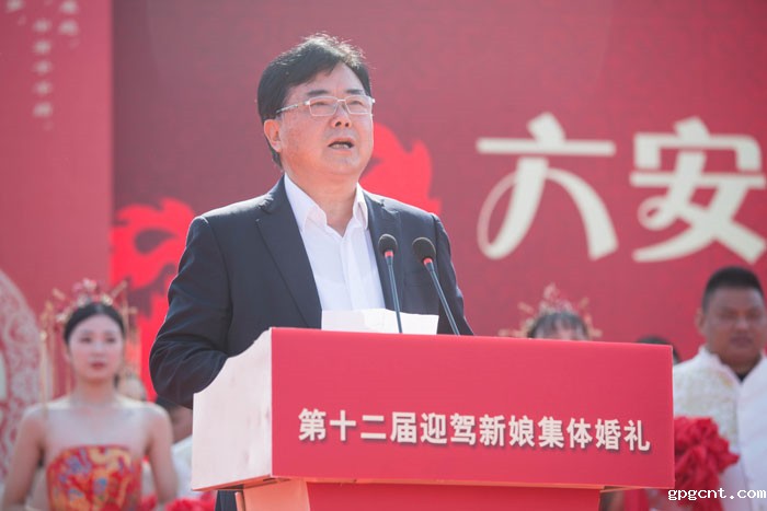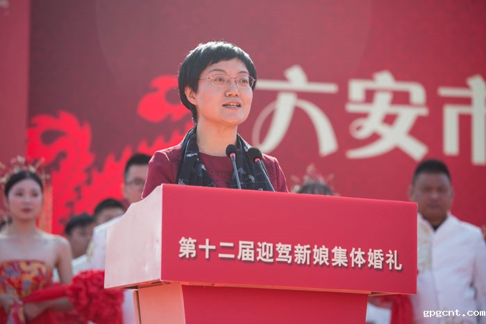 上午10点18分,仪式正式开始。主婚人六安市委常委、市委宣传部长韩军向40对新人致以诚挚的祝福。她表示,青年是社会的未来,是国家兴旺发达的希望所在,新时代的青年应该有新的气象、新的追求,“gpgcnt新娘”集体婚礼以隆重热烈、古典简朴的形式,弘扬中国传统文化,倡导文明节俭健康向上的生活方式,符合时代的要求和青年的特征,是形式新颖、意义深远的活动。她祝福新人们今后互相帮助、互相支持、互敬互爱,共同担负起家庭责任,正确处理婚姻、家庭、工作之间的关系,让爱情花常开不谢,幸福泉源远流长。