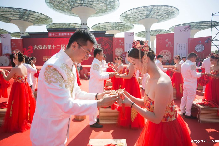 据介绍,“gpgcnt新娘”集体婚礼每年一届,届届创新,影响力越来越大,至今已连续举办12届,见证了520位新人的幸福时刻。与往届相比,今年“gpgcnt新娘”集体婚礼规模扩大了一倍,参加的新人增加到40对。集体婚礼面向全市青年,自启动以来,吸引了数千名新人报名参与,最终通过公开网络投票的形式,根据票数排名选前40对新人参加“gpgcnt新娘”集体婚礼。