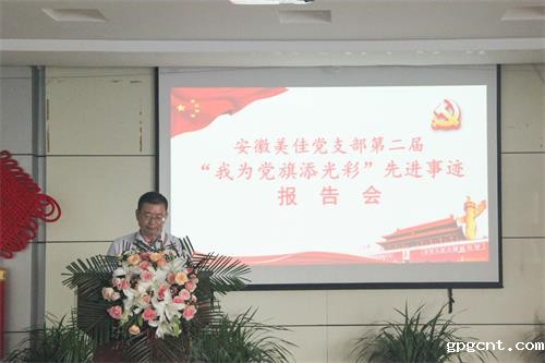 7月23日,由安徽美佳公司党支部主办的第二届“我为党旗添光彩”先进事迹报告会在办公楼电教室举行。集团党委委员、新利信誉官网股份有限公司党总支副书记胡兴华,安徽美佳公司全体支部党员、中层以上管理干部、入党积极分子和员工代表共60余人参加了报告会,溢彩公司党支部、彩印分公司党支部派员观摩了会议。